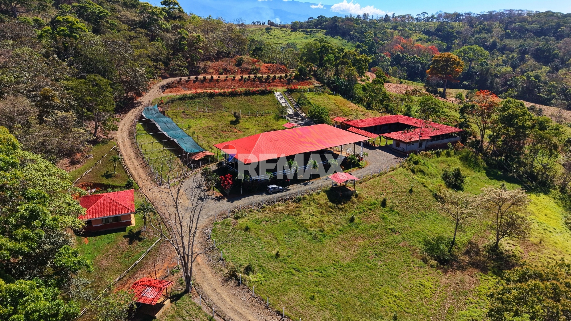 The farm features internal roads, a natural creek, and several building sites ready for development, making it ideal for additional homes, cabins, or a small eco-tourism project.