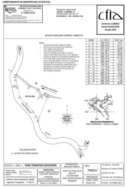 This 7,482 m² property is located in Coronado de Osa, within the Osa Peninsula. The lot offers a natural environment with abundant tropical vegetation, native trees, shaded areas, and a quiet, private atmosphere. A freshwater creek crosses the property, sharing its course with neighboring lots, adding freshness and connection to the local ecosystem.